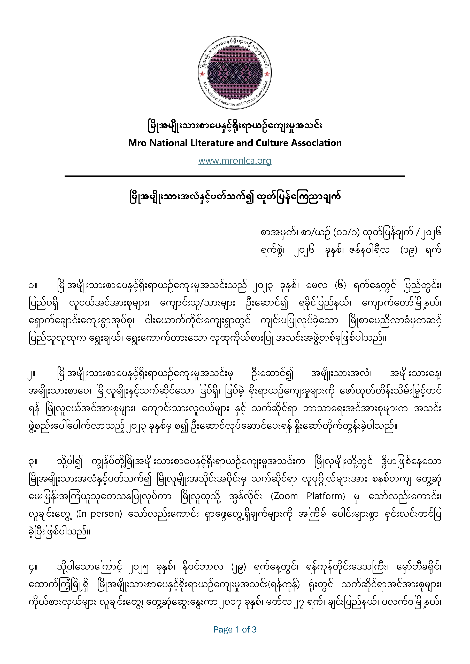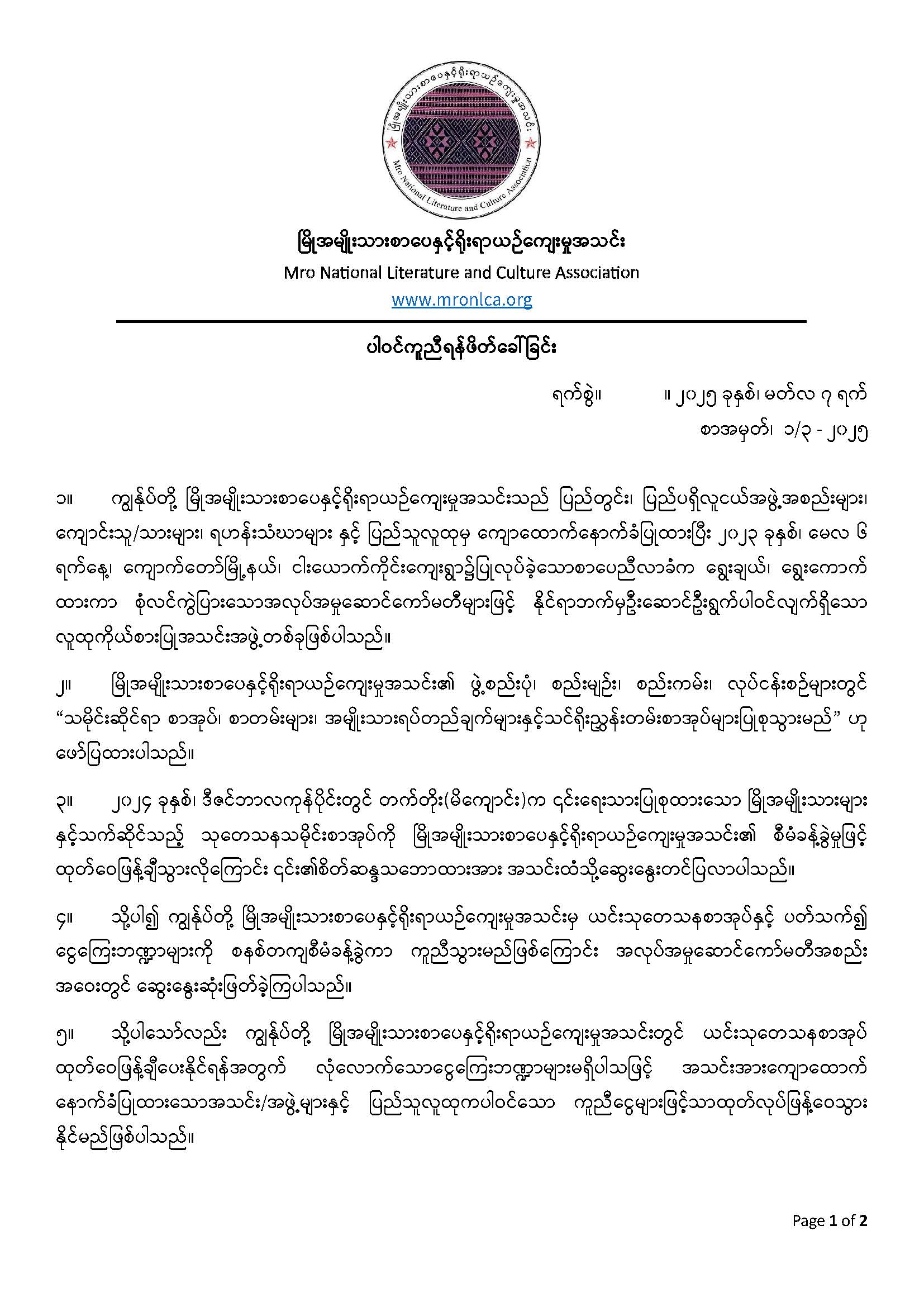 Mro National Literature And Culture Association