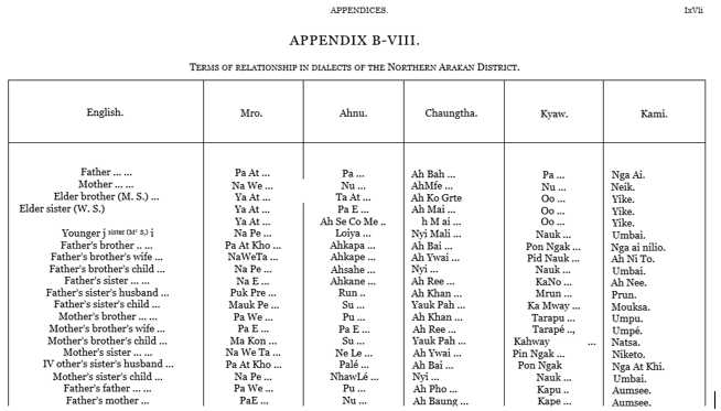 မြိုလူမျိုးတို့၏ ဆွေမျိုးနာမည်များ