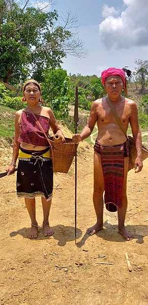 ရှေး မြို လူကြီးတို့သည် အလျှား (၁၂)တောင်၊ အရှည်ရှိသော တောင်ရှည်ပုဆိုးကို ရှေ့တစ်စ၊ နောက်တစ်စထား၍ ခါးတောင်း ကျိုက် ဝတ်ဆင်ကြသည်။ ရှေ့အစ နောက်အစသည် တွဲလွဲကျသည်။ ပွဲလမ်းသဘင်များ၌ ပိုးလုံချည်၊ ခေါင်းပေါင်း ကို ဝတ်ဆင်ကြသည်။ ထိုသို့ဝတ်လျှင် ဂုဏ်သရေ ရှိသည်ဟု ယူဆကြသည်[၂၅]။ မင်္ဂလာပွဲနှင့် မင်းခန်း မင်းနားတို့တွင် ပေ (၂၀) ထက်ကျော်သော ဂျက်ခုတ်ရက်ထည်ကို ခါးတွင် သုံးပတ် ပတ်ပြီး နောက်မြီး စွမ်း ရှည် ကို ပေါင် နှစ်ဘက်လုံး သုံးပတ် ကျော့ဝတ်ကာ ရှေး မြီး နောက် မြီးကို လက်ဝဲဘက် ခါးဆီတွင် အစချင်းပူး ချည်နှောင်လျှက် အစွန်းတူ ချထားရသည်။ ကိုယ်ဝတ် အင်္ကျီကို ကား ကောင်းမွန်စွာ ရက်လုပ်ထားသော အဖြူ ရက်ထည်ပေါ်တွင် အနီစင်းကြောင်း လက်ဝဲ၊ လက်ယာ နှစ်ကြောင်းစီ ရှေ့နောက် လေးကြောင်းပါသော ဂျက်ခုတ်ရက်ထည် အင်္ကျီလက်တို ဝတ်ဆင်ကြသည်။ သို့မဟုပ် အလျှား (၆) ပေ၊ အနံ (၄) ပေ ရှိ ပန်းအလှများ ဖော်ဆောင် ရက်လုပ်ထားသော “နီလိုင်”(Ielien)ခေါ် ကိုယ်လွှမ်းစောင်ကို လည်း ဘယ်ဖက် ပခုံးပေါ်တင်ပြီး လွှမ်းခြုံလေ့ရှိသည်[၂၆]။ သို့သော် မြိုလူမျိုးများသည် ရှေးရှေးကခန္မာကိုယ် အထက်ပိုင်းတွင် အဝတ်မဲ့ နေလေ့ရှိကြသည်။