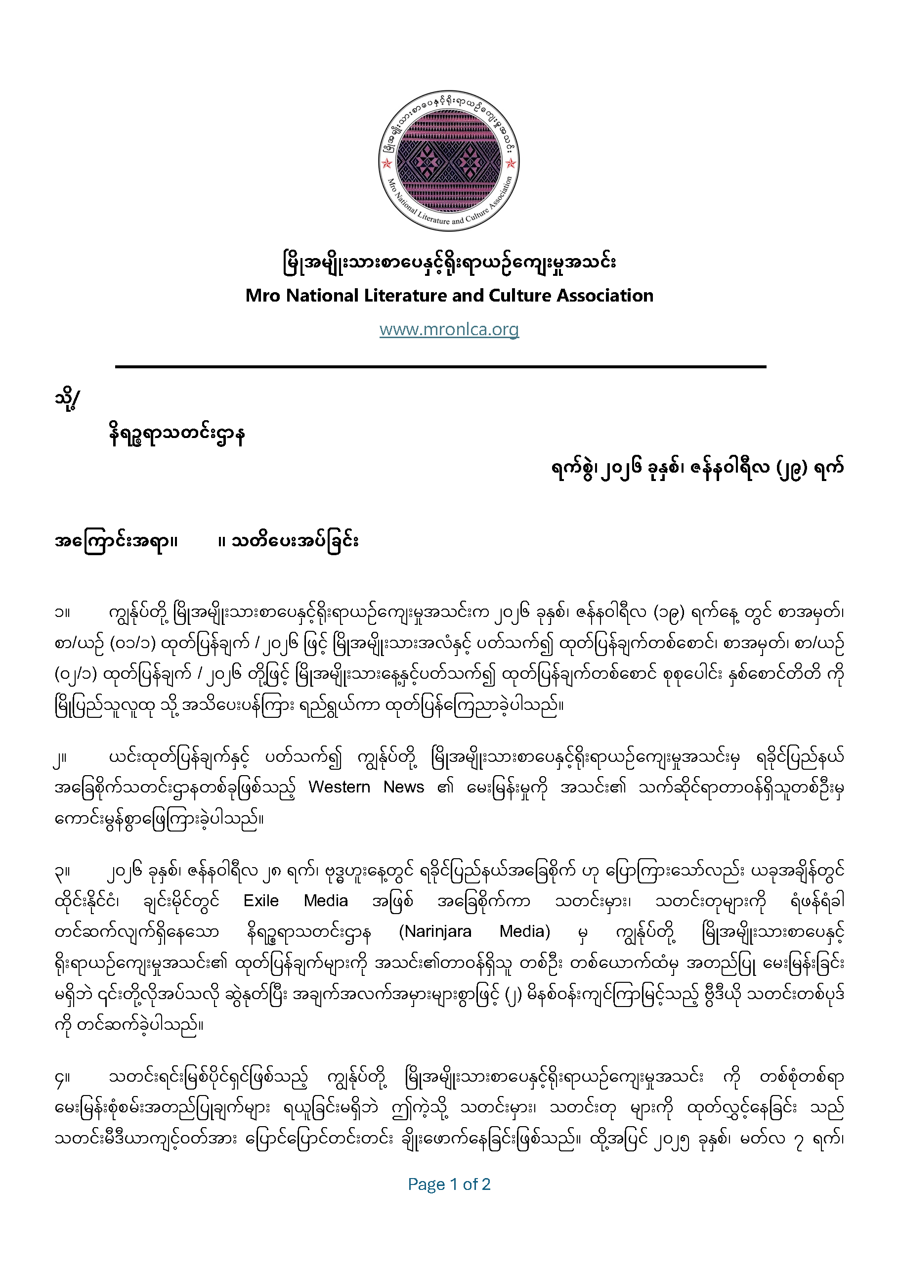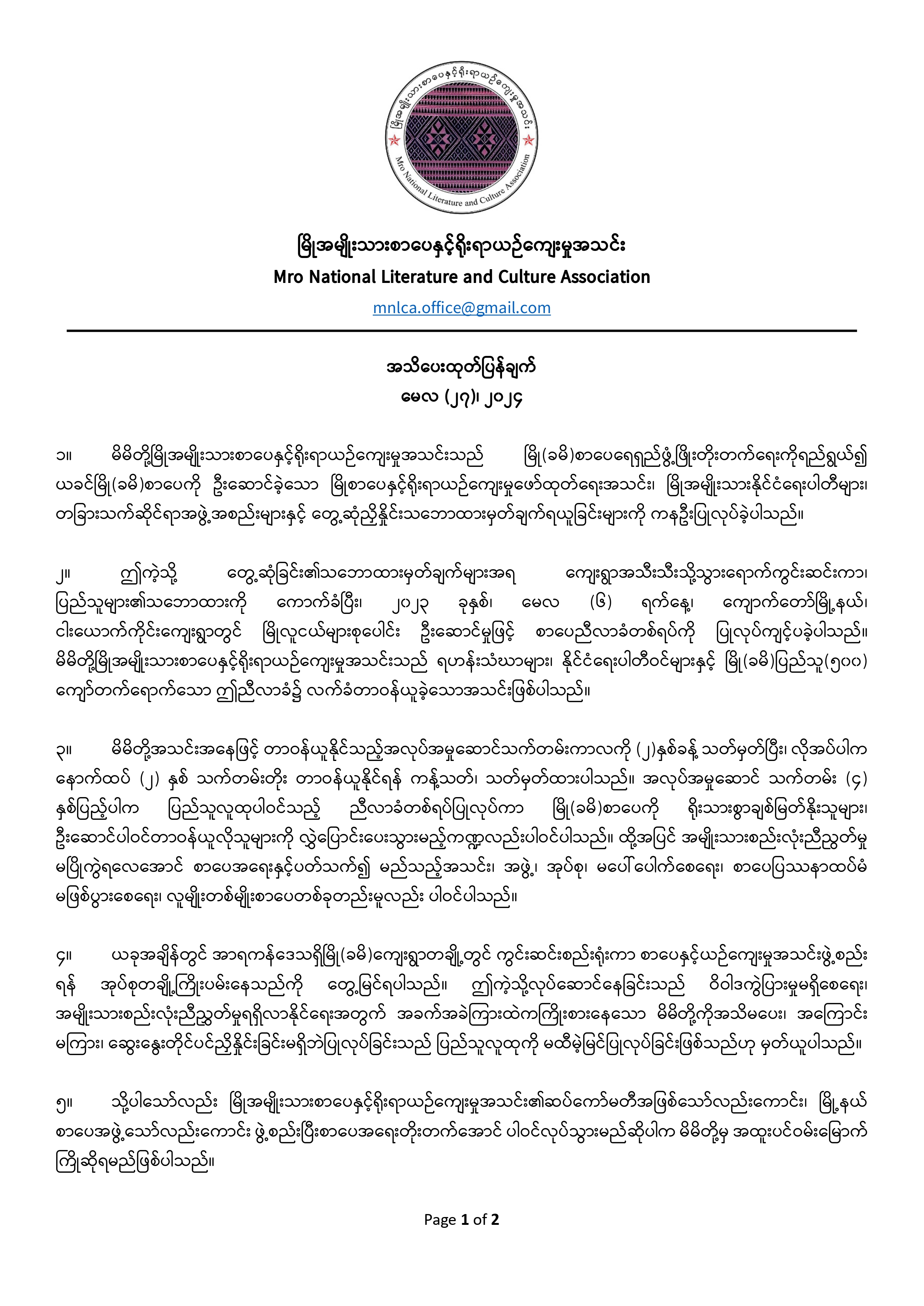 Mro National Literature And Culture Association